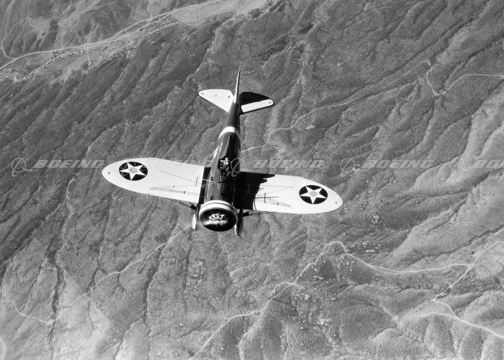 The Boeing P-26A Army pursuit single seater of 1933. A total of 136 of the P-26 type pursuit planes was built for the Army Air Forces and formed the main pursuit striking force of the Air Corps during the early 30s. The first all-metal production pursuit airplanes in the Air Corps, the Boeing P-26s had a top speed of 234 mph and a service ceiling of 27,400 feet. A Wasp 550 hp engine was used. Wings and landing gear were wire-braced. Tail surfaces were of cantilever construction. A number of these airplanes was also built for the Chinese Air Force as Boeing Model 281.