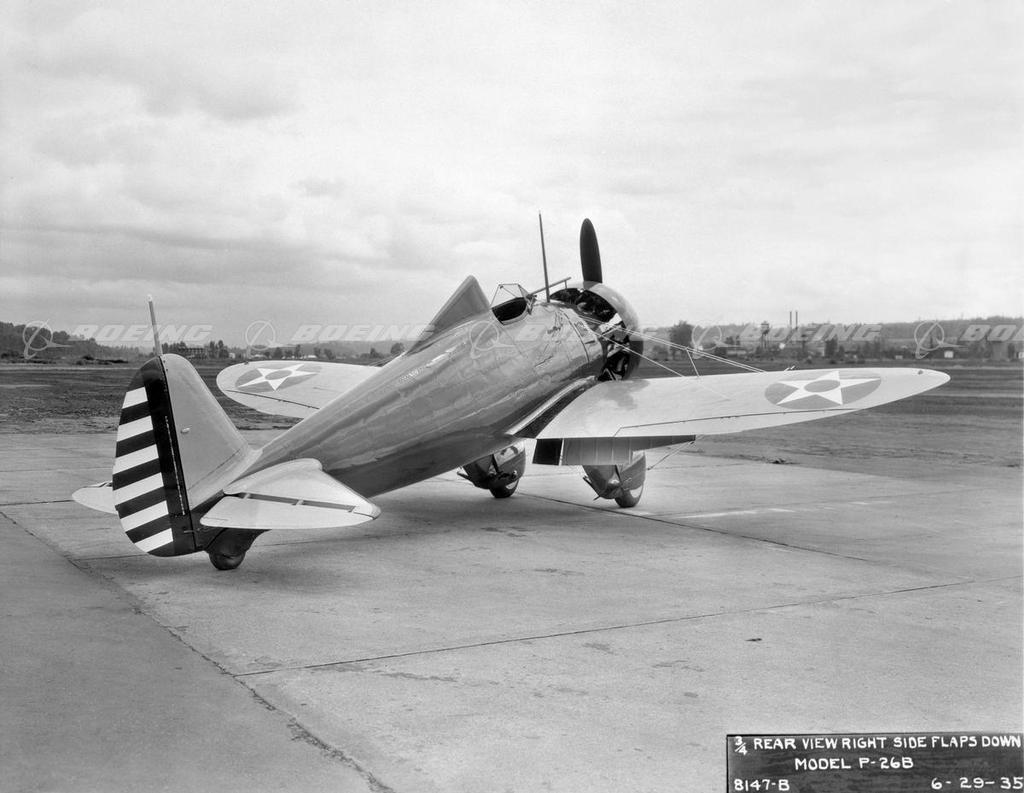 The all-metal, single-wing P-26, popularly known as the Peashooter, was an entirely new design for Boeing, and its structure drew heavily on the Monomail. The Peashooter's wings were braced with wire, rather than with the rigid struts used on other airplanes, so the airplane was lighter and had less drag. Because the P-26 flew 27 mph faster and outclimbed biplane fighters, the Army ordered 136 production-model Peashooters. Acclaimed by pilots for its speed and maneuverability, the small but feisty P-26 formed the core of pursuit squadrons throughout the United States.