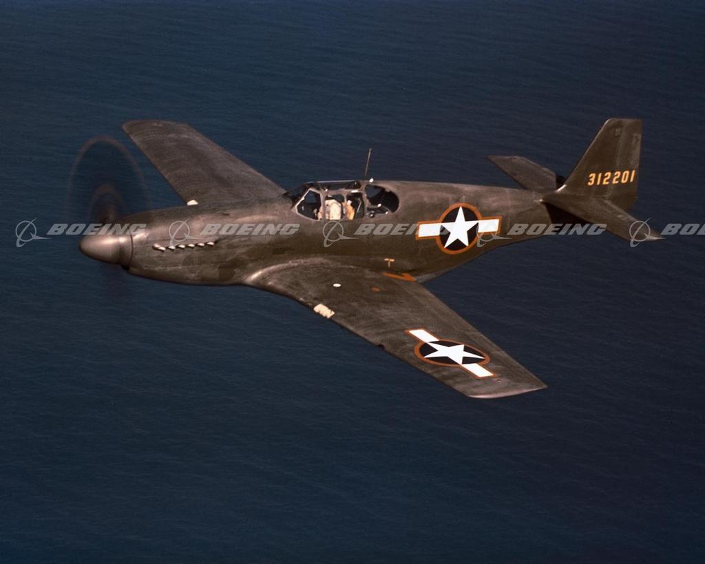 North American Aviation's powerful and agile P-51 was the first single-engine aircraft based in England to penetrate Nazi Germany during World War II. With its superior aerodynamics, the Mustang outperformed enemy planes and went on to establish an impressive aerial record. It first flew in 1941 and was initially designed for the British Royal Air Force for fighter reconnaissance. By war's end North American built 15,575 P-51 Mustangs. The P-51D Mustang had a wingspan of 37 feet and was 32 feet long. Powered by one 1,490- horsepower engine, it flew 437 mph with a range of 2,300 miles.