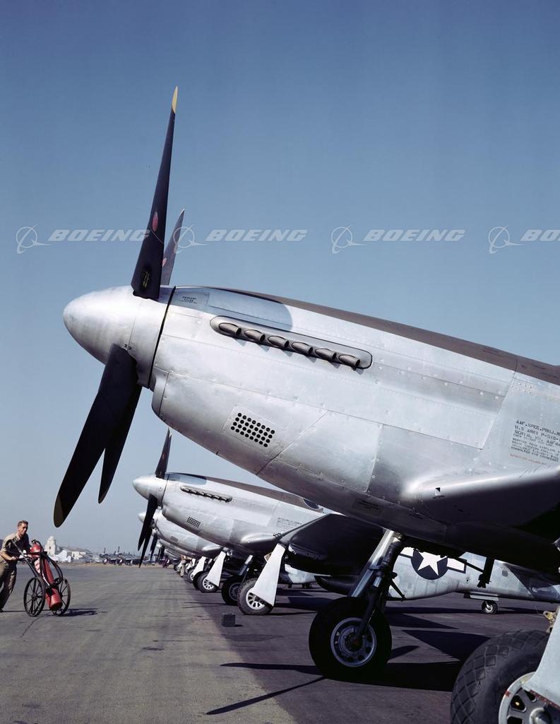 North American Aviation's powerful and agile P-51 was the first single-engine aircraft based in England to penetrate Nazi Germany during World War II. With its superior aerodynamics, the Mustang outperformed enemy planes and went on to establish an impressive aerial record. It first flew in 1941 and was initially designed for the British Royal Air Force for fighter reconnaissance. By war's end North American built 15,575 P-51 Mustangs. The P-51D Mustang had a wingspan of 37 feet and was 32 feet long. Powered by one 1,490- horsepower engine, it flew 437 mph with a range of 2,300 miles.