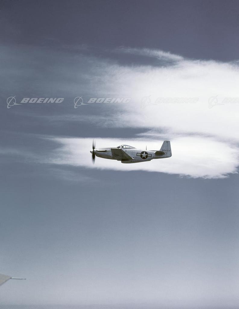 North American Aviation's powerful and agile P-51 was the first single-engine aircraft based in England to penetrate Nazi Germany during World War II. With its superior aerodynamics, the Mustang outperformed enemy planes and went on to establish an impressive aerial record. It first flew in 1941 and was initially designed for the British Royal Air Force for fighter reconnaissance. By war's end North American built 15,575 P-51 Mustangs. The P-51D Mustang had a wingspan of 37 feet and was 32 feet long. Powered by one 1,490- horsepower engine, it flew 437 mph with a range of 2,300 miles.