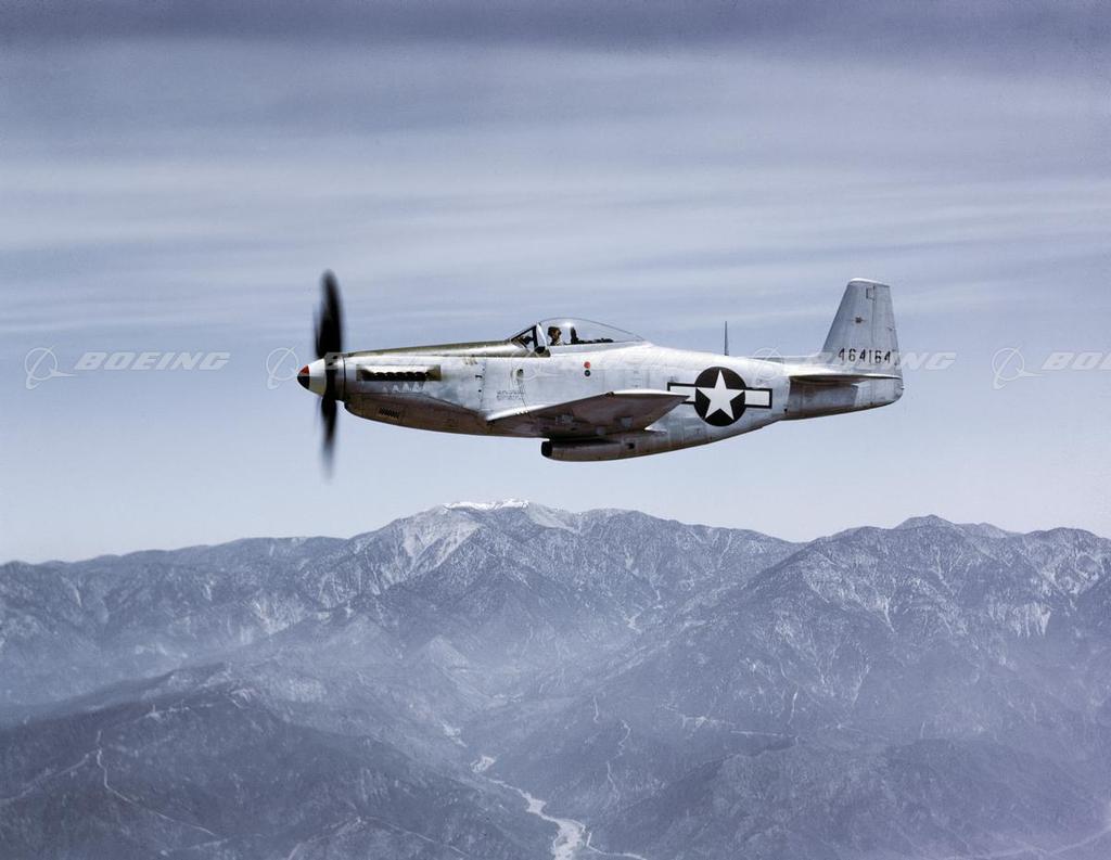 North American Aviation's powerful and agile P-51 was the first single-engine aircraft based in England to penetrate Nazi Germany during World War II. With its superior aerodynamics, the Mustang outperformed enemy planes and went on to establish an impressive aerial record. It first flew in 1941 and was initially designed for the British Royal Air Force for fighter reconnaissance. By war's end North American built 15,575 P-51 Mustangs. The P-51D Mustang had a wingspan of 37 feet and was 32 feet long. Powered by one 1,490- horsepower engine, it flew 437 mph with a range of 2,300 miles.