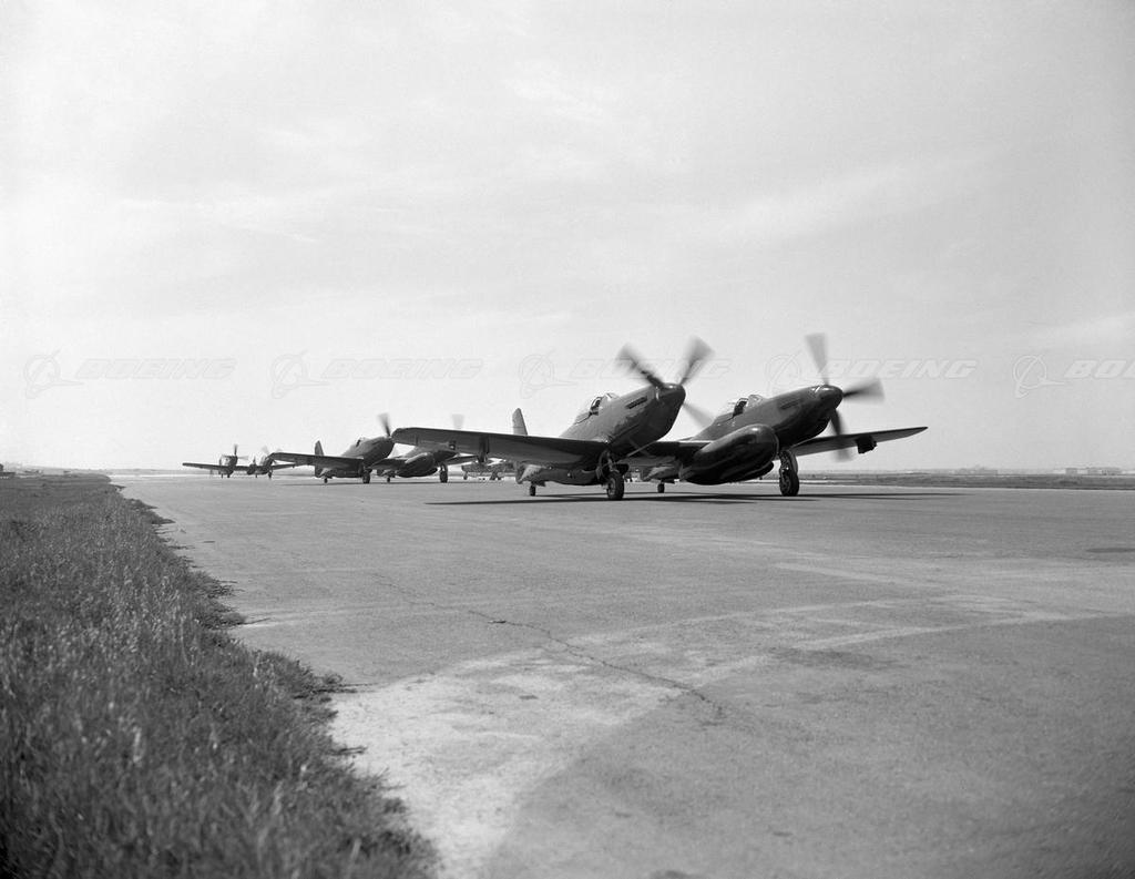 P-82 Twin Mustangs Lined Up for Takeoff