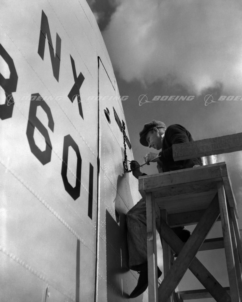 The whale-shaped Boeing Model 314 flying boat took cruise ship elegance into the air. Luxurious amenities aboard the Clipper included a stylish lounge, a dining salon, and a bridal suite. At 106 feet long with a 152-foot wingspan, it was the largest passenger transport in its time. At night, 74 seats converted into 40 bunks. It first flew in 1938 and on June 28, 1939, made the first scheduled transatlantic flight. In 1943, President Franklin Delano Roosevelt celebrated his birthday on a Model 314 airplane, flying to Casablanca and back, becoming the first U.S. president to fly while in office