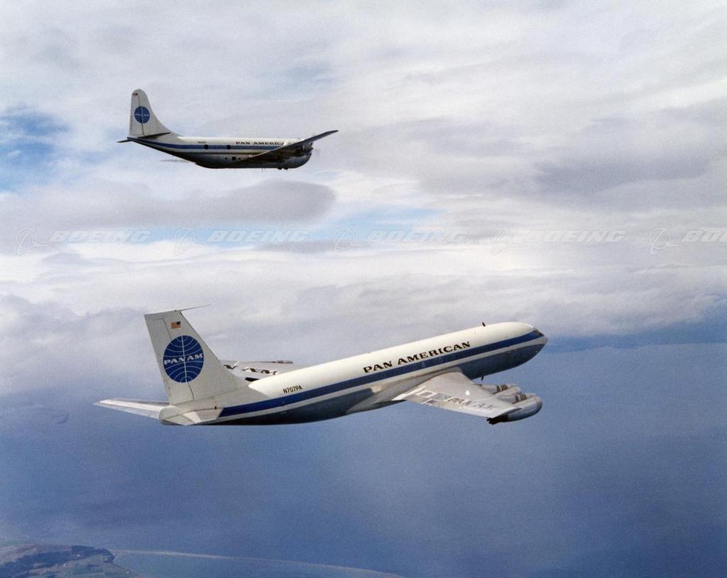 Pan Am's 707 in Flight with 377 Stratocruiser