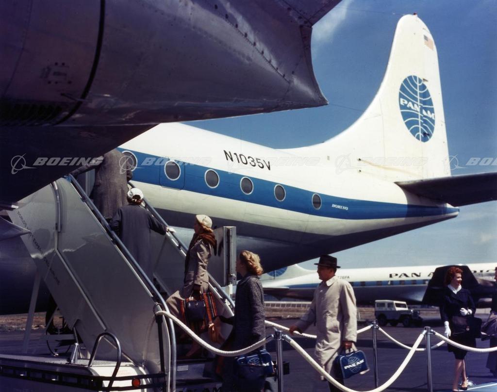 The Boeing Model 377 Stratocruiser was a propeller-powered luxury airliner. It was both the last of its kind and the first of its kind, and it prepared airlines and passengers for the commercial jet airliners of today. The "First Lady of the Airways" was the elegant civilian offspring of the austere C-97 military transport. It was as tough as a military plane, but as comfortable as a first-class hotel.