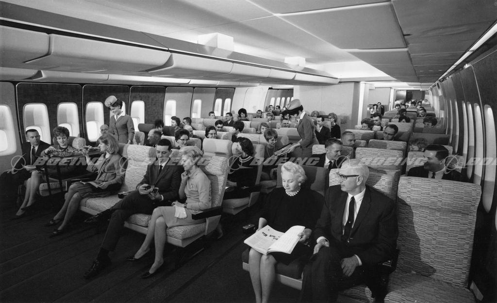 747-100 Upper Deck Passenger Cabin Mock-Up, circa 1968