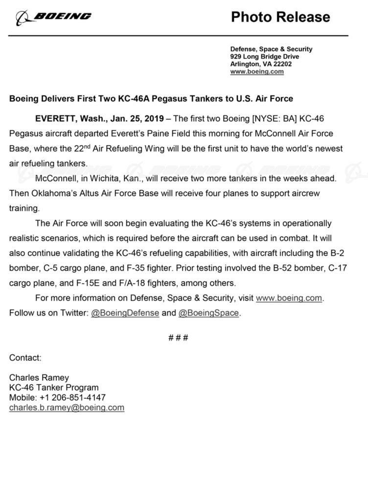 Photo Release KC-46 Delivery Flyaway