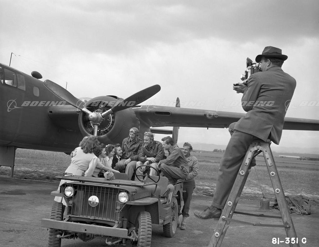 Photographer Shoots Adoring Girls Chatting up B-25 Mitchell Pilots