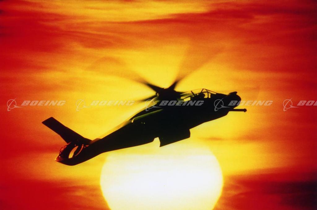 AH-64D Apache Longbow in Flight at Sunset with RAH-66 Commanche