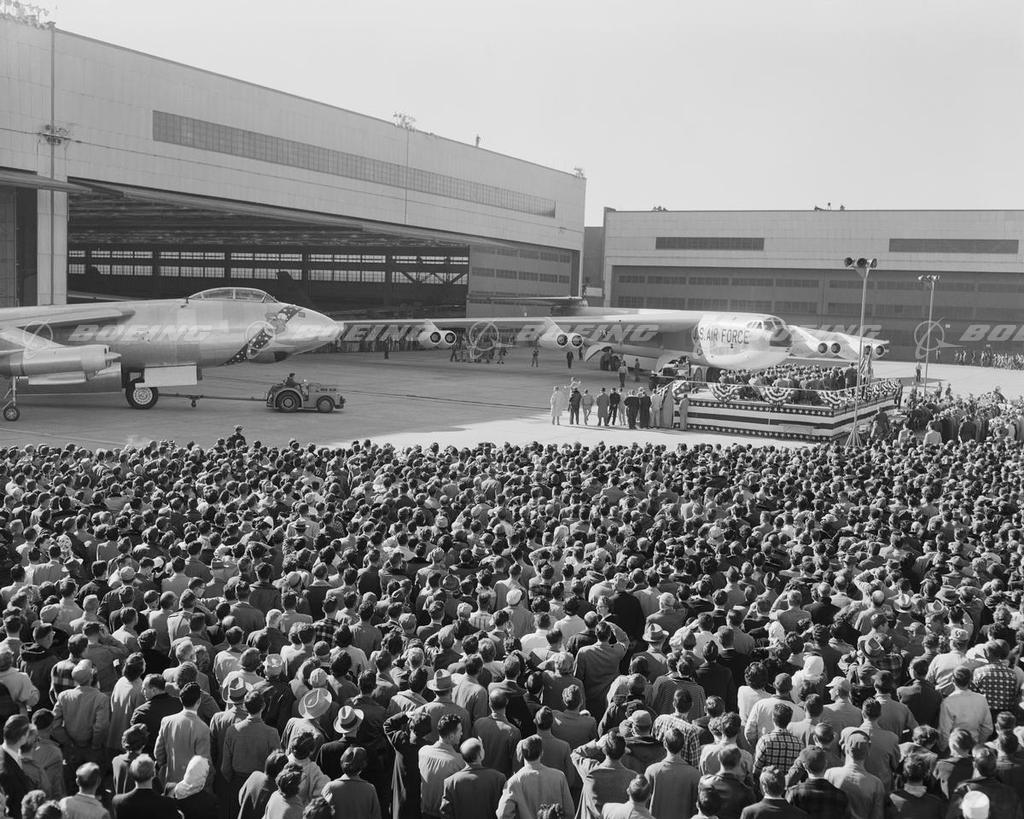 B-47 Stratojet at Rollout Ceremony for B-52D Stratofortress Number1