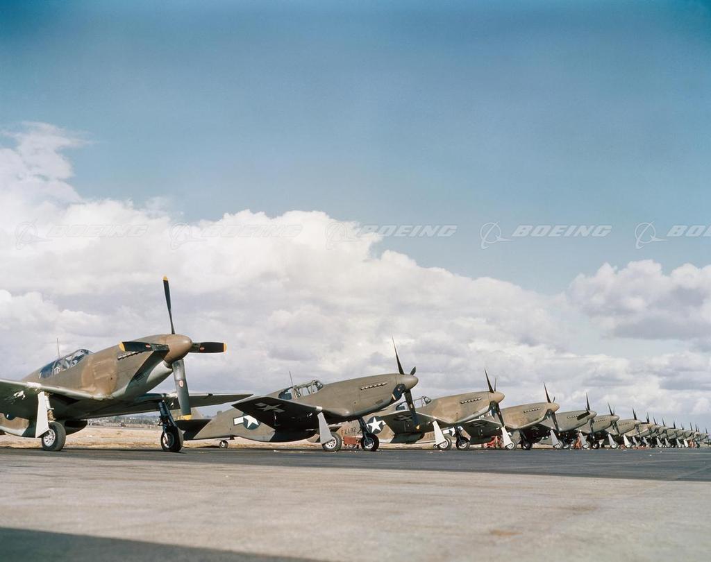 The early versions of the fast and powerful P-51 Mustang looked very different from the P-51D and later versions. The initial P-51 “razorback” design buried the pilot inside the airplanes for less drag, while the P-51D, while also very efficient aerodynamically, was the first to use a “teardrop” bubble canopy and cut-down rear fuselage. North American Aviation’s agile P-51 was the first single-engine aircraft based in England to penetrate Nazi Germany during World War II. With its superior design, the Mustang outperformed enemy planes and went on to establish an impressive aerial record. Initially designed for the British Royal Air Force for fighter reconnaissance, it first flew in 1941. By war’s end North American built 15,575 P-51 Mustangs. The P-51D Mustang had a wingspan of 37 feet and was 32 feet long. Powered by one 1,490- horsepower engine, it flew 437 mph with a range of 2,300 miles.