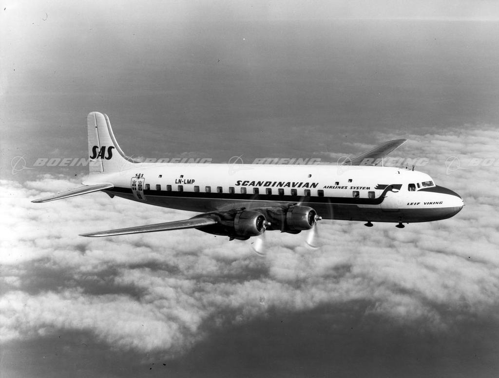 Douglas DC-7C in SAS Livery Crossing California Coastline