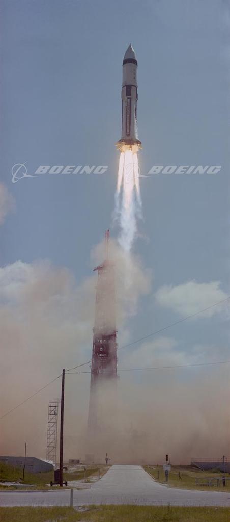 In 1961 NASA contracted Boeing to build the 138-foot, 300,000-pound S-1C boosters that were the first stage of the 363-foot Apollo/Saturn V launch vehicles that would blast Apollo capsules to the moon. The first-stage booster, designed by Boeing in Huntsville, Ala., and assembled in New Orleans, La., had 7.5 million pounds of thrust and was a quantum leap beyond other rockets of the time. Its task was to hurl a 120-ton payload into orbit around the Earth. North American Rockwell built the S-II second stage, the command and service modules, and the F-1 and J-2 rocket engines, and the McDonnell Douglas Corp. built the S-IVB third stage. As time went on, Boeing was given more responsibility for the Saturn V program and, by 1964, was in charge of assembling all three stages of the rocket and providing mission support. Boeing also provided the technical staff at Cape Kennedy, responsible for checkout support during final assembly.