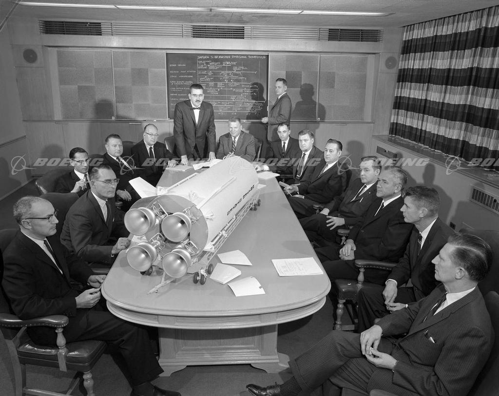 Saturn Proposal Group with Saturn Booster Rocket Model