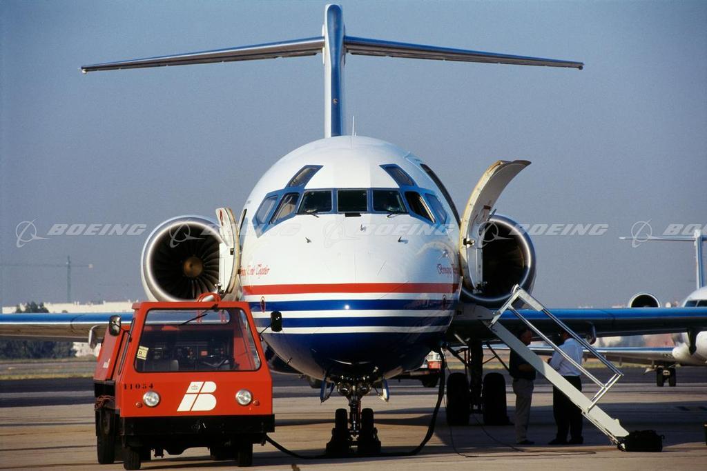 The 717 is a full-size twinjet designed specifically for the short-range, 100-seat regional airline market and is a very efficient and exceptionally quiet airplane. Its advanced technologies and rugged simplicity of design allow it quick turnaround time at a wide range of airports, so crew and passengers spend less time on the ground. It makes effective use of today's technology to lower operating costs, reduce noise and emissions, and provide big jet comfort. The airplane, formerly MD-95, was designated the Boeing 717 following the merger of McDonnell Douglas and The Boeing Company in 1997. In early 2005, after careful assessment of the challenging 100-seat market, Boeing announced that it will conclude 717 production in 2006 after delivering on current customer commitments.