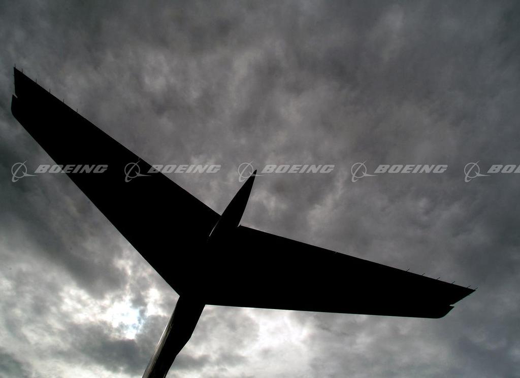 Silhouette of C-17 Globemaster III Tail from Under Wing