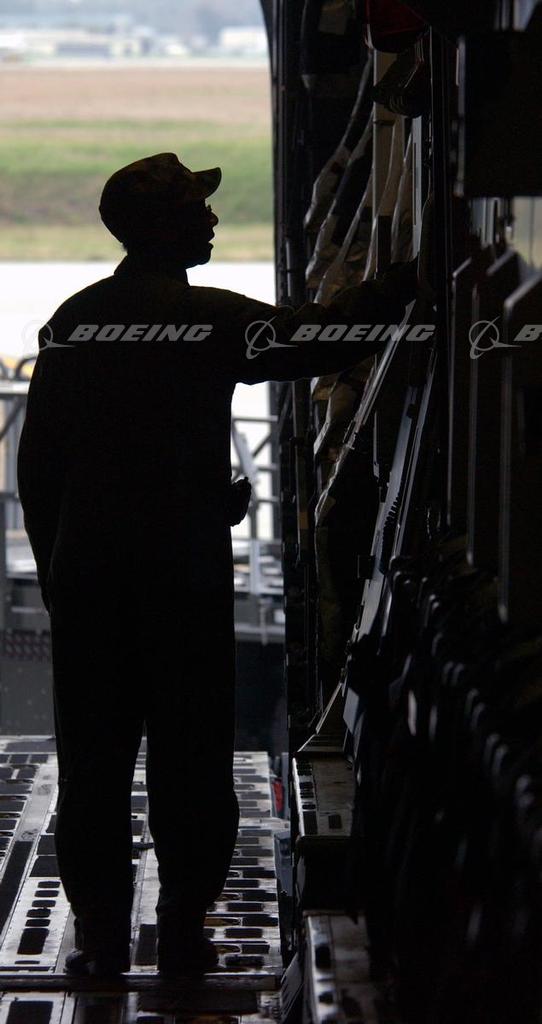 Silhouette of Mechanic Inside C-17 Globemaster III