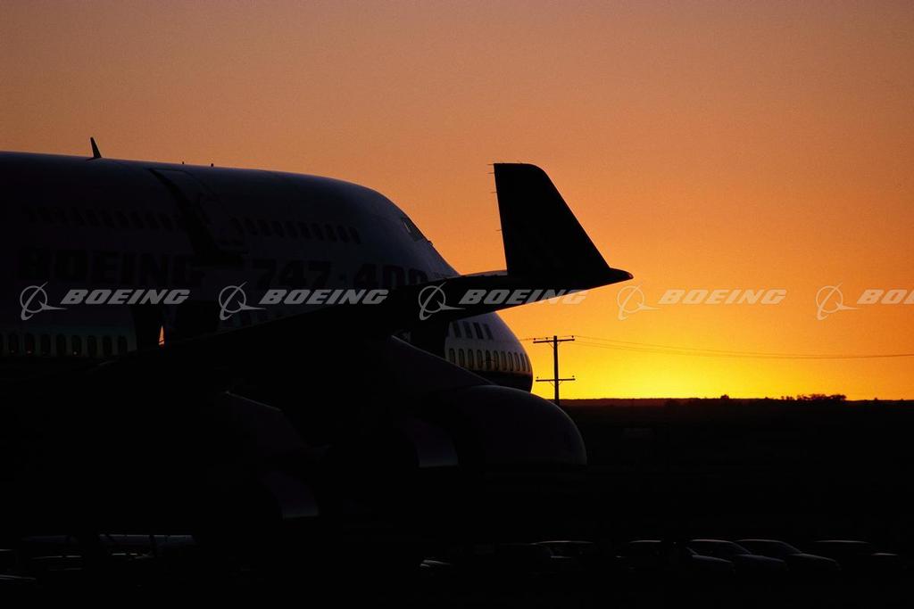 Silhouetted 747-400 Tail at Sunset