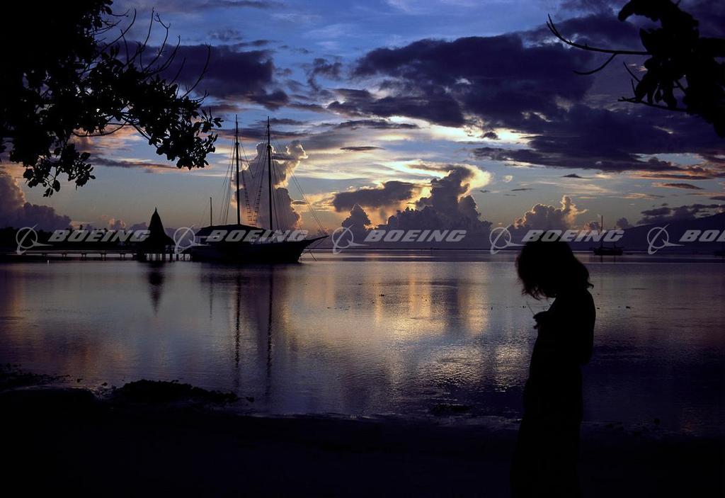 Sailboat on the Horizon at Sunset, Oahu, Hawaii