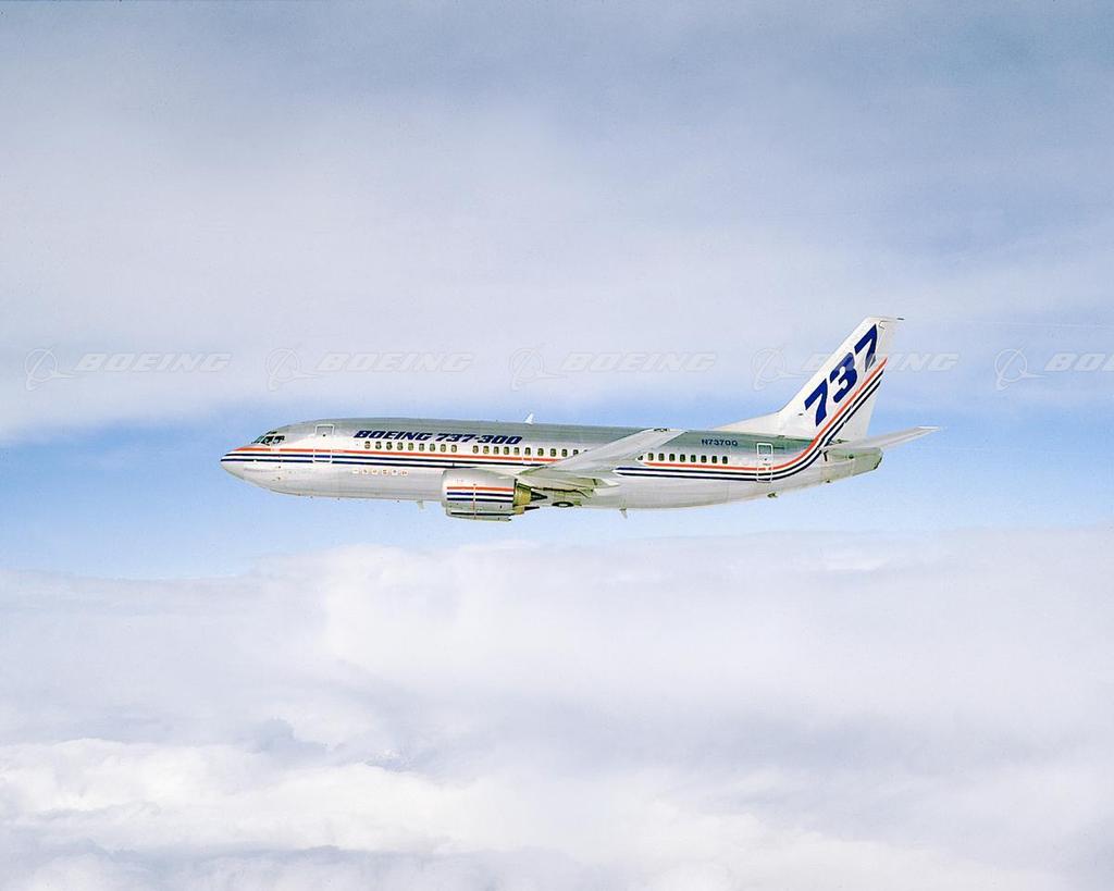 A lengthened fuselage version of the 737-200, the 737-300, was ordered into production in March 1981, with first factory rollout January 17, 1984 (pictured here). First flight of the advanced derivative was on February 24, 1984, and the first delivery to US Air came on November 28, 1984. However, the joint leadoff customer Southwest Airlines placed the first 737-300 into passenger service on December 7, 1984. Design changes resulted in lower operating costs and a reduction in fuel burn up to 30% less than the 737-200.
