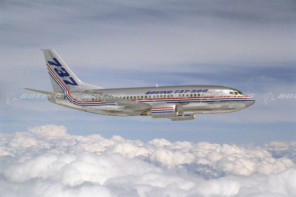 Although it has the largest model designator of its generation, the 737-500 is actually smaller than either the 737-300 or the 737-400. The 737-500 is 101 ft 9 in long and can seat up to 132 passengers in an all-economy configuration. It was built to replace the 737-200. About the same size as the 737-200, it is the smallest member of the 737 family, but uses all the advanced technologies of the larger 737-300 and 737-400 models. The 737 family of jets share the reliability, simplicity, family commonality, and low maintenance costs that have made the 737 the favorite of the world's airlines.