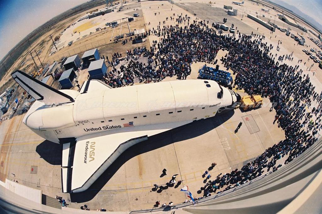 Endeavour rolled out of Boeing's Palmdale, Calif., plant on April 25, 1991. It was the fifth space shuttle to be built, constructed as a replacement for Challenger, which was lost in 1986. Endeavour was largely constructed from structural spare parts and was built in considerably less time than previous orbiters. Endeavour flew the first assembly mission to the ISS, STS-88 in 1998, and the final ISS assembly mission STS-134 in 2011. This image shows Space Shuttle Endeavour (OV-105) being rolled out at the Palmdale, Calif., facility on April 25, 1991. Boeing is the manufacturer of the space shuttle orbiters.