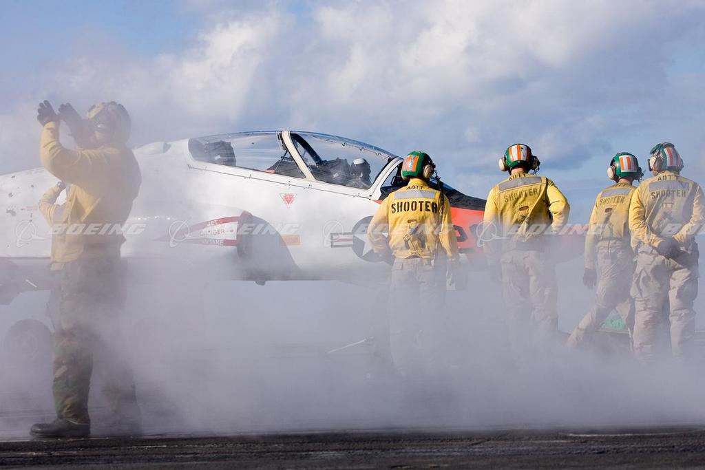 T-45 Goshawk Aboard USS Theodore Roosevelt Prepares for Catapult Launch