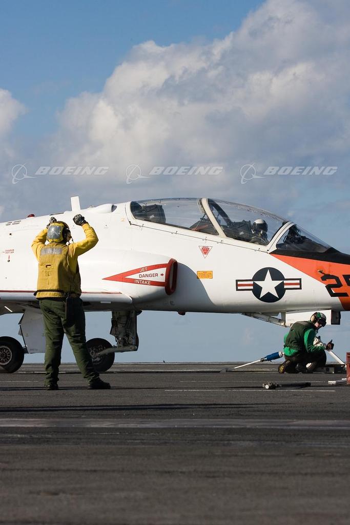 The T-45 Goshawk is the center of the T-45 training system, which was designed for undergraduate jet aircraft training. The Goshawk is a heavily modified naval variant of the Hawk, a land-suitable trainer produced by U.K.-based BAE Systems. Boeing delivered the 221st and final T-45 training jet to the U.S. Navy in November 2009.