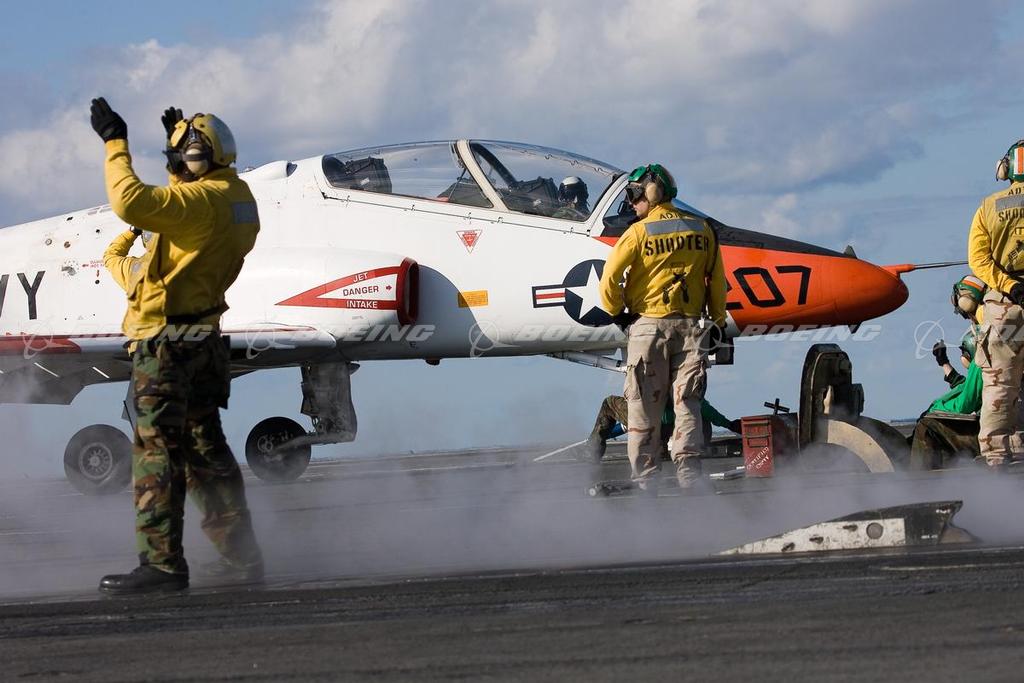 The T-45 Goshawk is the center of the T-45 training system, which was designed for undergraduate jet aircraft training. The Goshawk is a heavily modified naval variant of the Hawk, a land-suitable trainer produced by U.K.-based BAE Systems. Boeing delivered the 221st and final T-45 training jet to the U.S. Navy in November 2009.