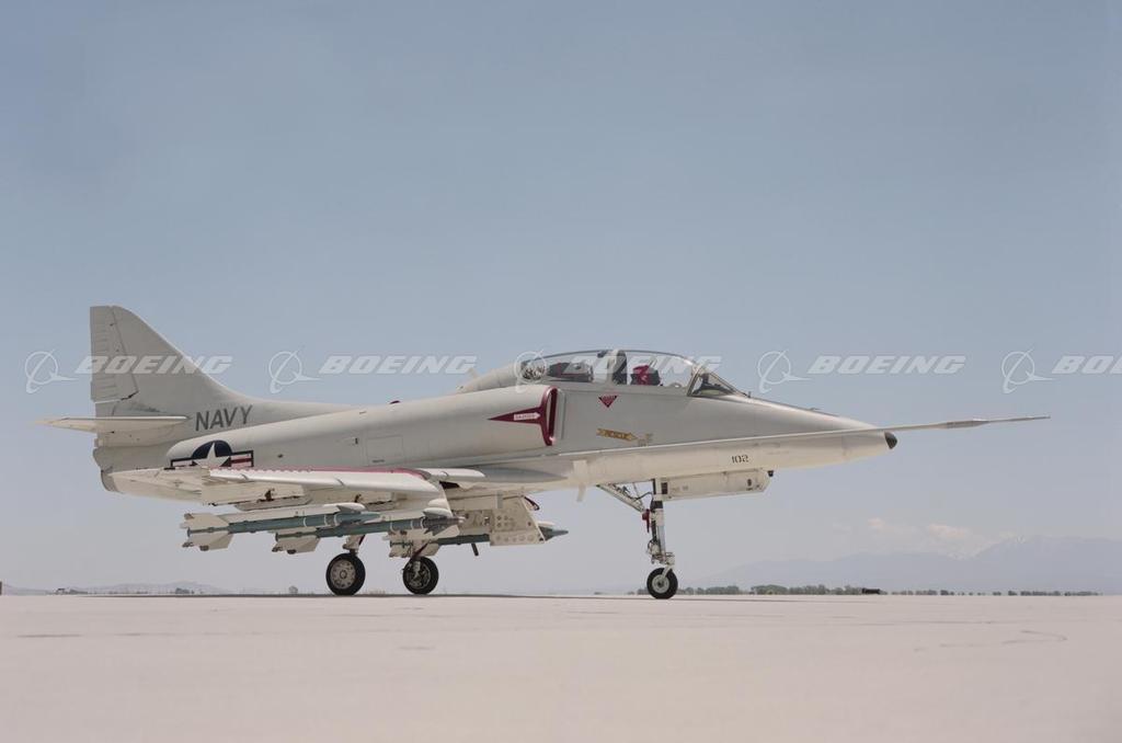 Douglas A-4 Skyhawk (1954-1979): Another successful attack aircraft from the Ed Heinemann team at Douglas was the A-4 Skyhawk. Designed for carrier operations, the Skyhawk was America’s smallest combat jet. Known as “Heinemann’s Hot Rod,” “Scooter,” and the “Mighty Midget,” it reversed the trend toward bigger and more complex aircraft in favor of durability and reliability. The A-4D first flew on June 22, 1954, demonstrating combinations of high performance and lightweight, with speed and maneuverability never before seen in an attack jet. After 1962, the joint service designation was changed to A-4. Behind the AD Skyraider, the A-4 Skyhawk was the most numerous postwar combat aircraft built by Douglas. During its long service career, the U.S. Navy and Marine Corps and the air arms of six other nations flew the A-4 The Skyhawk saw combat in Vietnam, the Middle East, the Falkland Islands, and the Persian Gulf. For 12 years, from 1974 to 1986, the A-4 Skyhawk served with the Navy’s Blue Angels flight demonstration team. In 1979, twenty-five years after its first flight, the last of 2,960 A-4s was delivered. Two-seat trainer versions included the TA-4F, TA-4J and the TA-4K Series. In addition to its primary role as a jet trainer, the TA-4 retained the A-4’s combat capabilities with bombs, rockets, missiles and guns. The TA-4 series had a slightly longer fuselage but carried less internal fuel than the A-4 attack bomber series. The first of the A-4 jet trainer series was delivered to the U.S. Navy in February 1966. A total of 555 TA-4 jet trainers were built. An additional 23 TA-4s were modified from A-4 airframes.