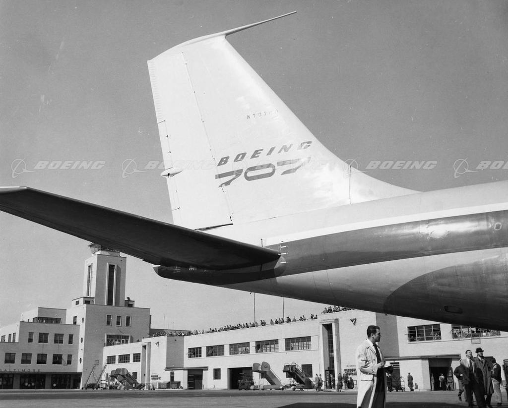 Tail of Boeing 707 on Tarmac in Baltimore Following Record Setting Flight, 1957