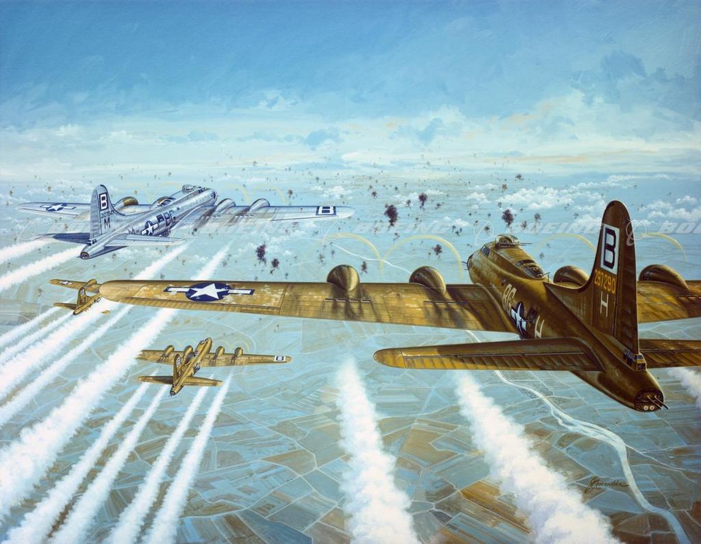 B-17s of the 95th Bombardment Group clear the initial point, the beginning of a planned bomb run, on their way to Berlin.