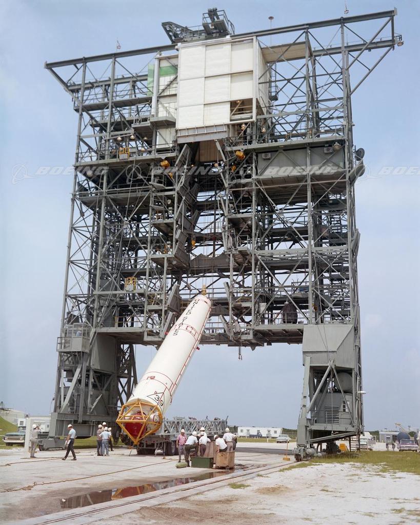 Thor Delta D, S/N 25, on Launch Pad with Crew