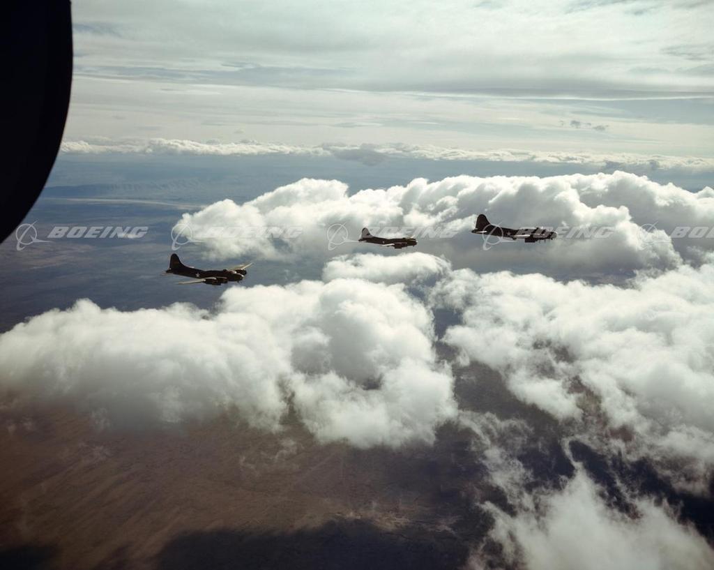 Three B-17E Flying Fortresss with Bomb Doors Open