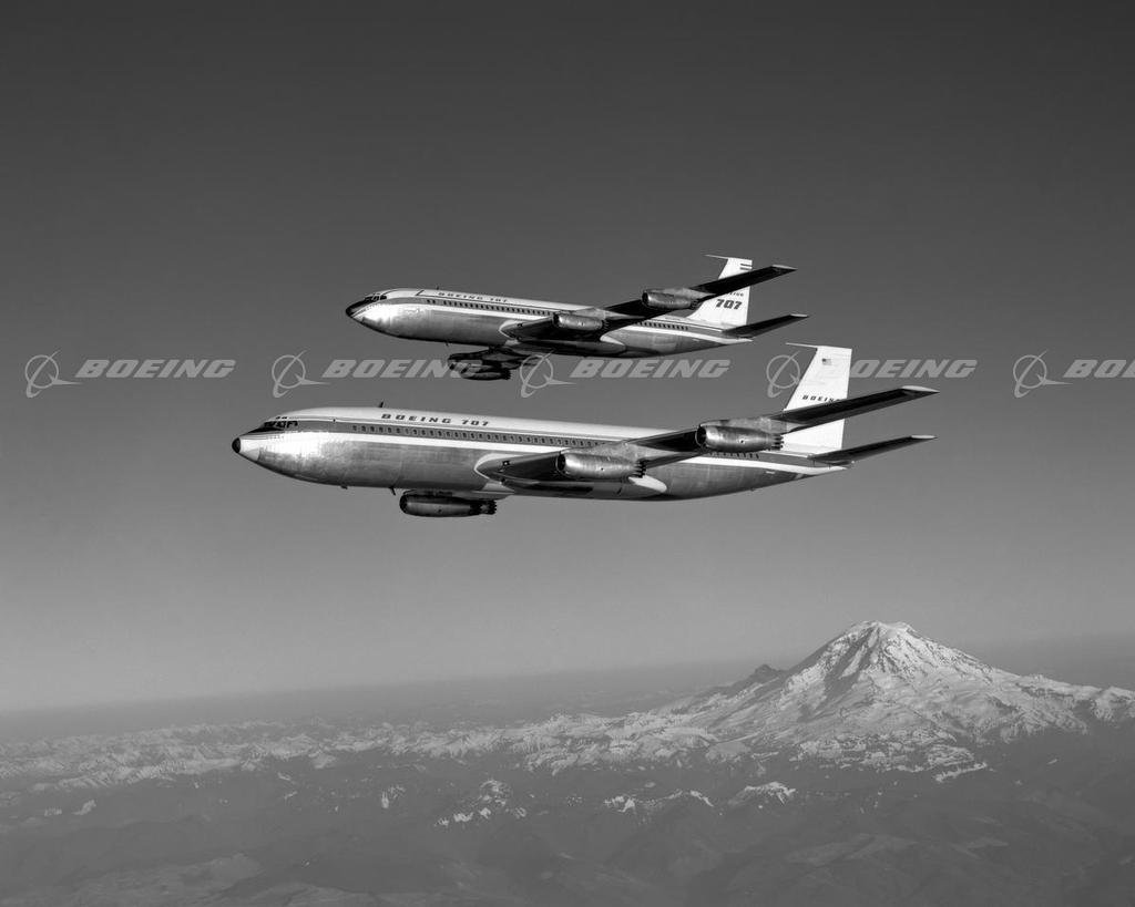 Two 707-120s Flying Over Mt. Rainier in Certification Flight