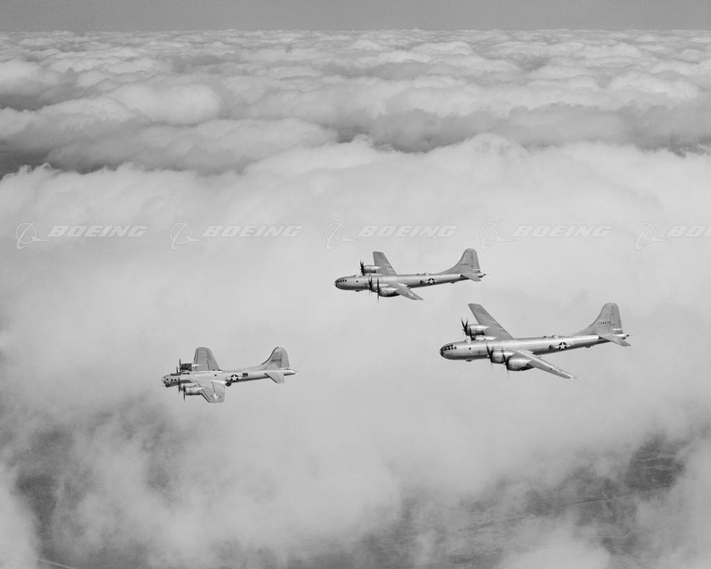 Boeing Bombers, B-52, B-47, B-29 and B-17 in Flight Together