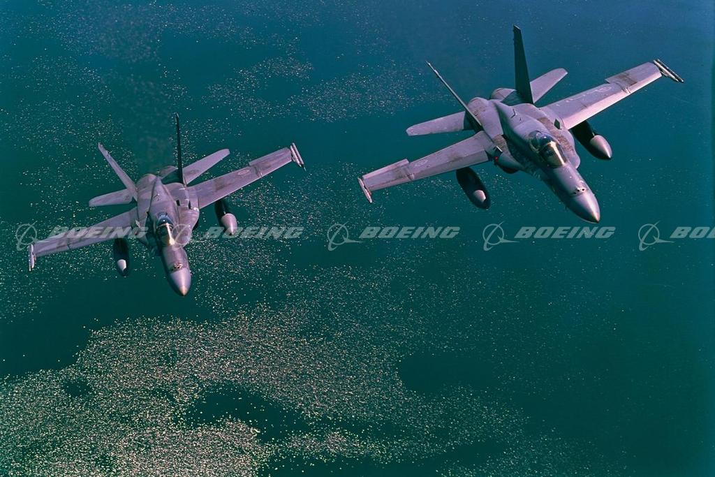 F/A-18 Hornets Flying in Formation Outside the Cockpit