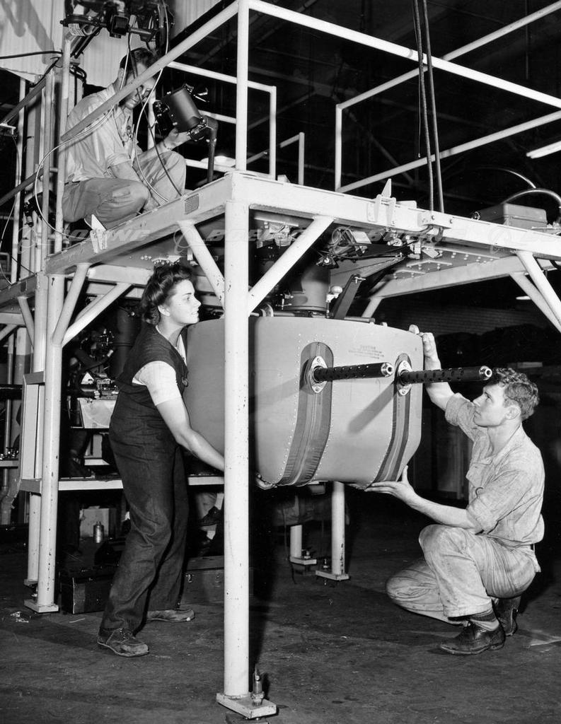 Woman Drilling a B-17 Flying Fortress Tail Turret
