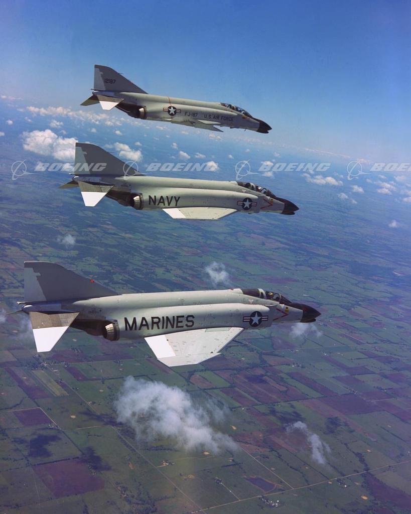 US Air Force, Navy, Marines and F-4 Phantom IIs Flying in Formation