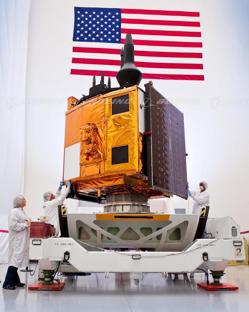The second GPS IIF satellite in preparation for launch aboard a United Launch Alliance Delta IV vehicle in summer 2011. The satellite pictured here is from the company’s satellite integration and test complex in El Segundo, CA, and was transported to Cape Canaveral in a Boeing-built C-17 Globemaster III airlifter.