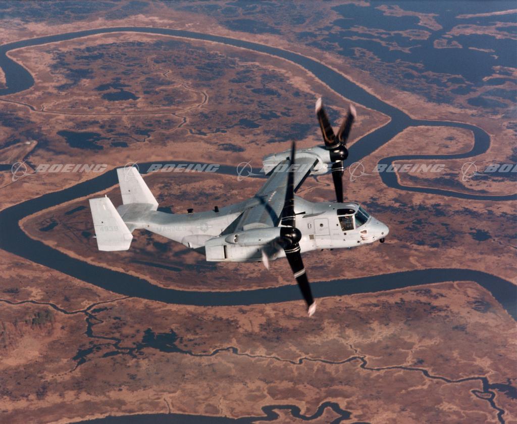 The V-22 Osprey was the first aircraft designed from the ground up to meet the needs of all four U.S. Armed services. In partnership with Bell Helicopter Textron, Boeing Helicopters built the revolutionary tiltrotor aircraft that takes off and lands vertically like a helicopter. Once airborne, its blades can be rotated to convert the aircraft to a turboprop airplane capable of high-speed, high-altitude flight. Boeing was assigned responsibility for the fuselage, all subsystems, digital avionics and fly-by-wire flight-control systems.