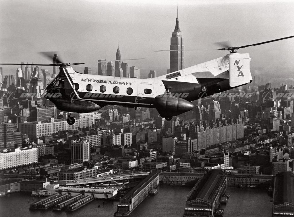 Vertol 107 Helicopter Hovering Over Wall Street Heliport
