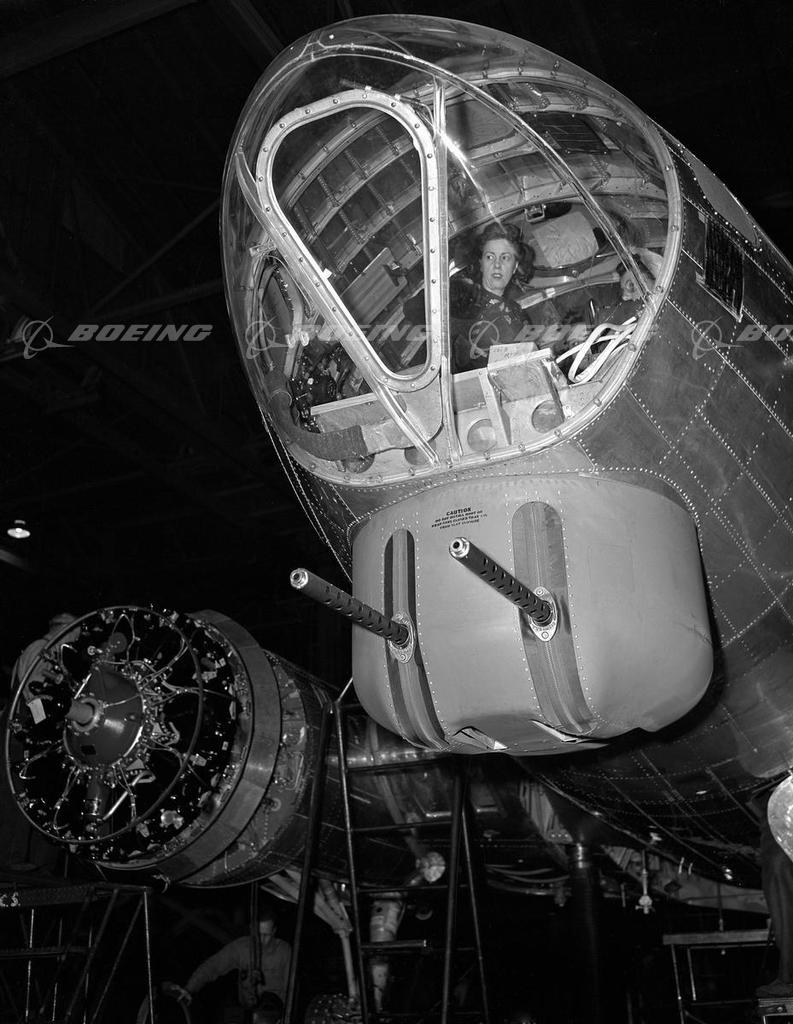 Woman Inside B-17G Flying Fortress Chin Turret