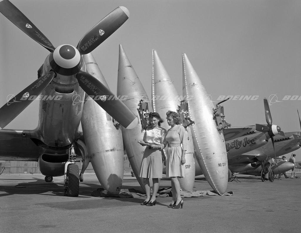 P-82 Twin Mustang Betty Joe with Women Sitting on Drop Tanks