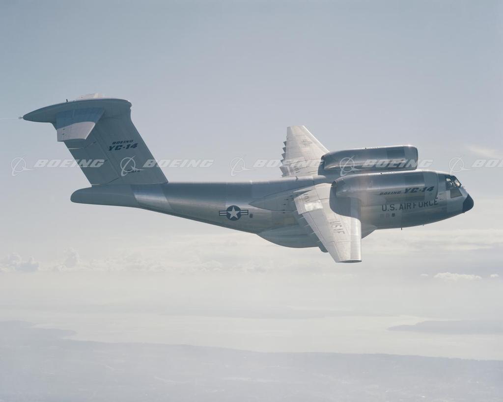 The YC-14 was built to carry troops and equipment into battle zones with short, temporary airfields. Cargo and wheeled vehicles could be loaded into the wide fuselage via a built-in tail ramp. Although the YC-14 never went into production, its two prototypes, built in 1976, introduced significant technological breakthroughs, most notably an upper-surface-blowing (USB) design for high aerodynamic lift. The achievements of the YC-14 contributed in a significant way to advance studies of STOL technology.