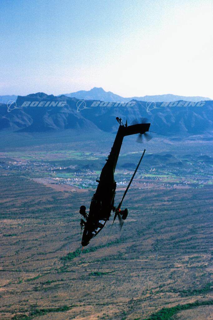 The AH-64D Apache Longbow can perform loops, left and right rolls and turns, split S and hammerhead maneuvers, and 360 degree turns, all while flying at full mission weight of approximately 16,000 pounds.