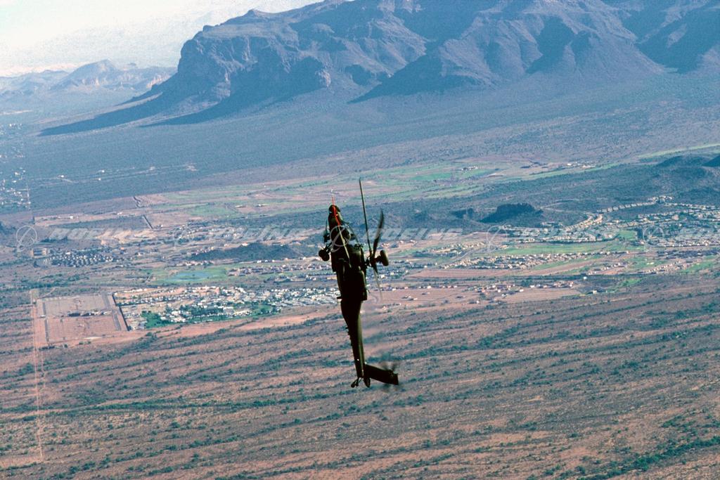 The AH-64D Apache Longbow can perform loops, left and right rolls and turns, split S and hammerhead maneuvers, and 360 degree turns, all while flying at full mission weight of approximately 16,000 pounds.