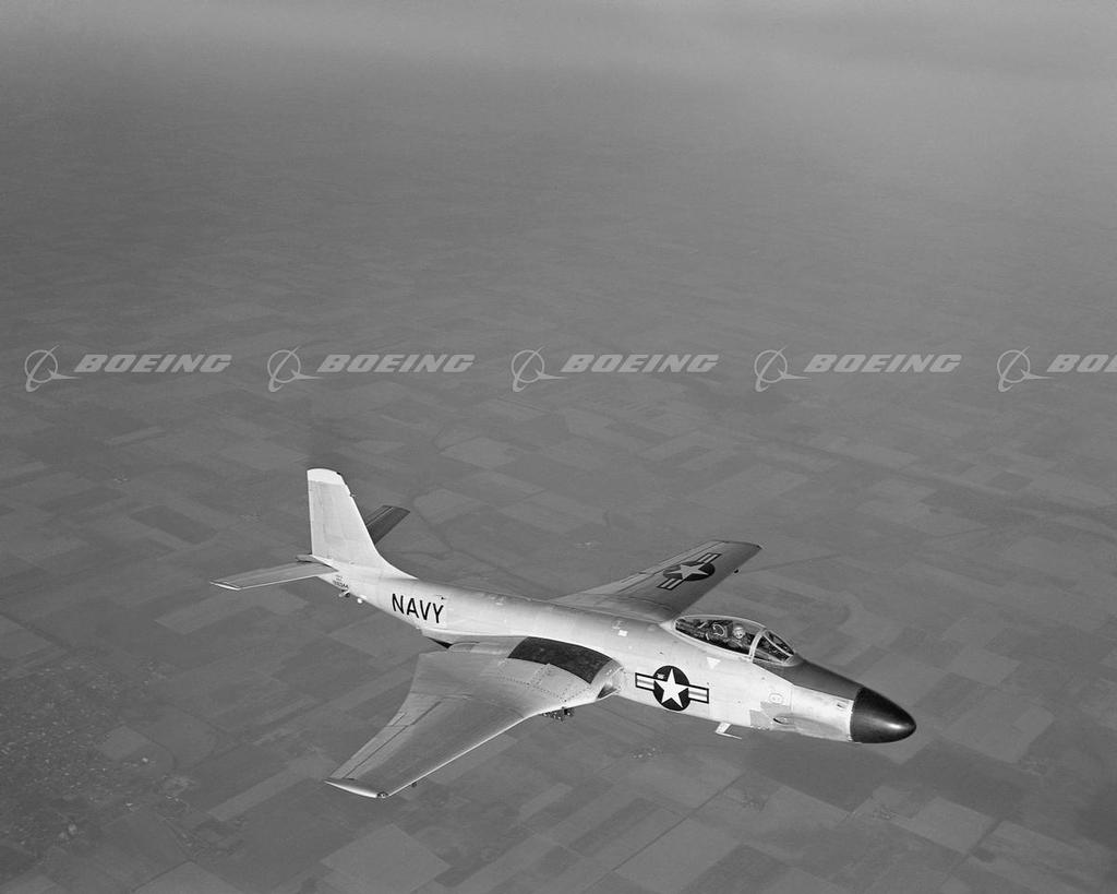 McDonnell F2H Banshee (1947-1953): The U.S. Navy’s F2H Banshee was first ordered on March 1945, shortly after the first flight of the FH-1 Phantom. Although it bore a clear resemblance to the Phantom, the two engines of the F2H delivered twice the thrust of the FH-1. After a first flight on January 11, 1947, the Banshee was ordered into production in day-fighter, night-fighter and photo reconnaissance versions. The F2H could climb at a rate of 9,000 feet per minute, nearly twice that of other aircraft of the day. In 1949 the Banshee became the first jet aircraft to set a 52,000 foot altitude record. The Banshee performed a major role in the Korean War as a fighter-bomber and reconnaissance aircraft with the U.S. Navy and Marine Corps, a part dramatized by author James Michener in his novel The Bridges at Toko-Ri. The McDonnell plant in St. Louis delivered the last of 895 Banshees in 1953.