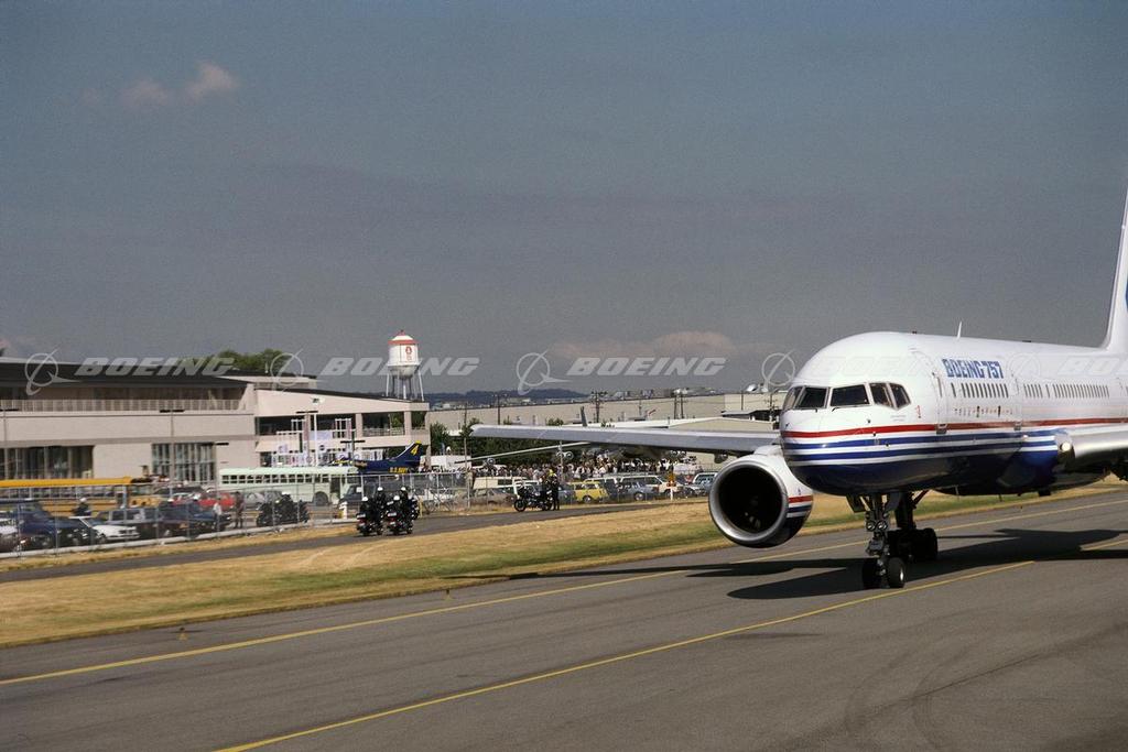 The twin-engine, medium-range Boeing 757 commercial transport first flew Feb. 19, 1982 and is up to 80 percent more fuel efficient than the 727s it was designed to replace but retains the 727's short-field capability. The 757-200, also offered as a freighter, can carry 239 passengers, in two classes, up to 4,520 miles. In September 1996, Boeing launched the 4,000-mile-range 757-300, a stretched model that seats from 243 to 279 passengers. By 1999 Boeing had delivered more than 1,000 757s. Four 757s were modified as replacements for the older 707-based VC-137 executive transports for government officials and designated C-32As.
